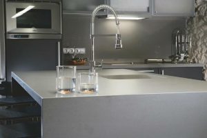 De kristalachtige glans van onze aanrechtbladen van composiet trekt veel mensen aan. Het materiaal is dan ook bijzonder populair. Die populariteit komt echter niet alleen door de glinstering, maar ook door de vele voordelen die composiet u biedt. Het materiaal is bijvoorbeeld uitstekend bestand tegen hitte. Daarnaast is een composiet aanrechtblad krasvast en vlekvrij. Het materiaal heeft een hoge dichtheid waardoor dranken zoals wijn geen kans krijgen om vlekken in uw werkblad te maken. Hierdoor behouden aanrechtbladen van composiet jarenlang hun fantastische look.